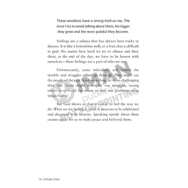 Through this book, author Imran Zaki takes us on a journey of finding courage and hope with the Quran when we are drowning in the darkness. From the Quran, Allah SWT tells us the best of stories from the prophets and the pious people who were tested with hardships, and sorrows.