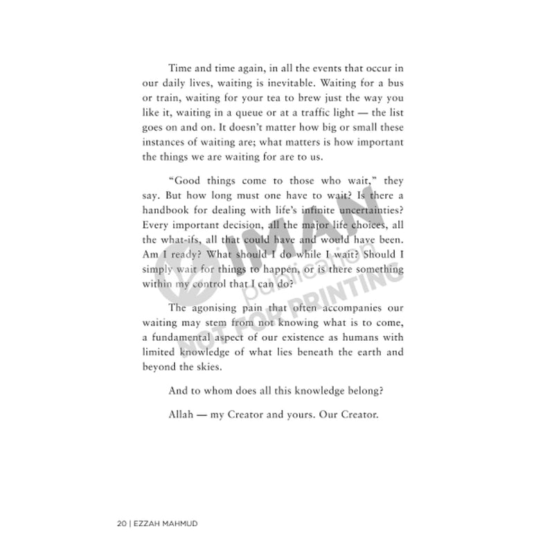 With a focus on faith and reliance on Allah SWT, this book is the comforting companion one needs for navigating the uncertainties of life, reminding us that in every wait, there is an opportunity for growth, learning, and deepened faith.