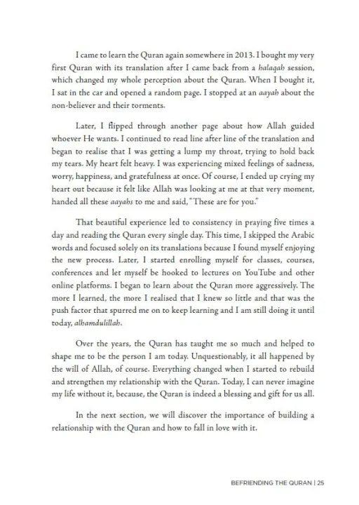 Each of us will have our own personal journey of connecting with the Quran and nurturing love towards the Quran. The steps and stories might vary from one person to another but the goal is the same —to always be close to your Quran.