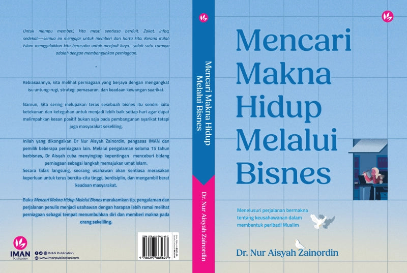 Inilah semangat yang dibawakan oleh Dr. Nur Aisyah Zainordin, pengasas IMAN. Melalui buku ini, beliau berkongsi kisah jatuh bangun, nilai dan inspirasi β agar lebih ramai melihat bisnes sebagai jalan untuk memperkasa diri dan memberi erti kepada ummah.