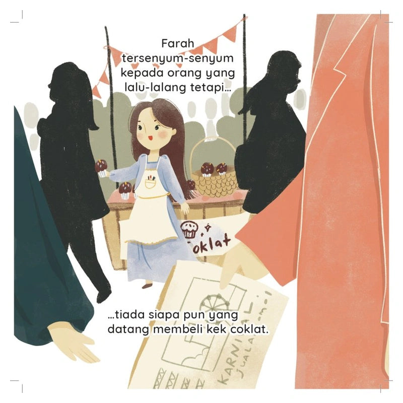 Farah mempunyai satu misi. Farah ingin menjual kek coklat dan mendermakan wang jualan ke rumah anak-anak yatim. Tetapi, misi ini lebih susah daripada apa yang Farah bayangkan. Farah rasa tidak boleh buat.