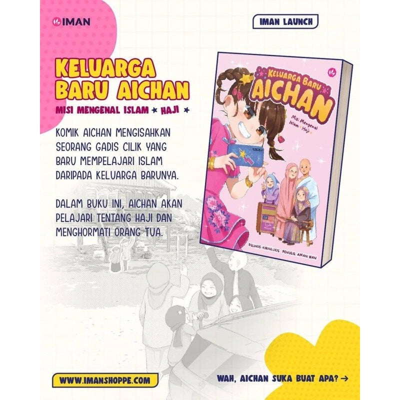 Komik Aichan mengisahkan seorang gadis cilik yang baru mempelajari Islam daripada keluarga barunya. Dalam buku ini, Aichan akan pelajari tentang makanan, aurat dan solat.