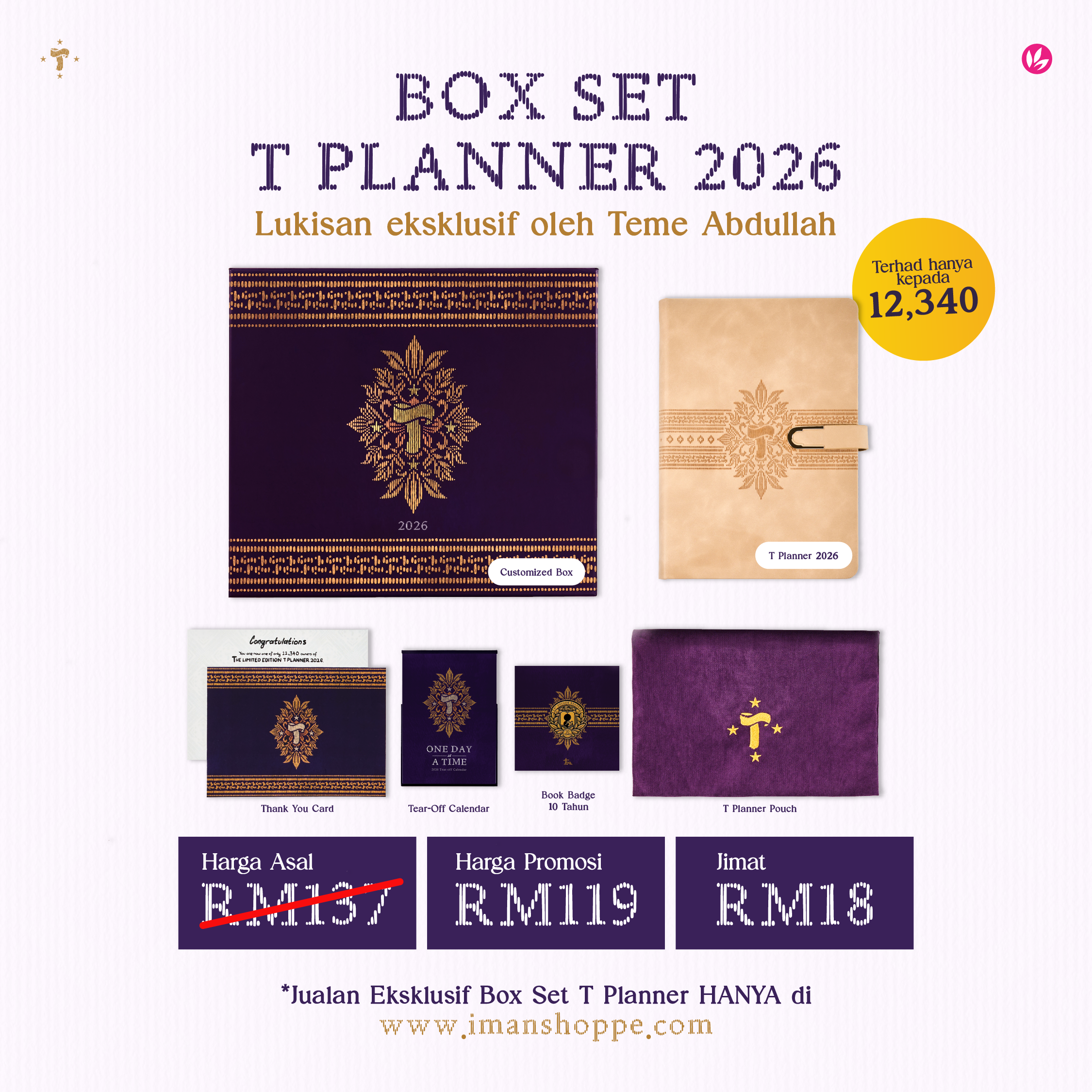 2. Untuk item pra tempah seperti Box Set T Planner 2026, T Planner 2026, Tear-Off Calendar dan Book Badge akan mula dihantar bermula 5 Disember hingga 31 Disember 2025 secara berperingkat.