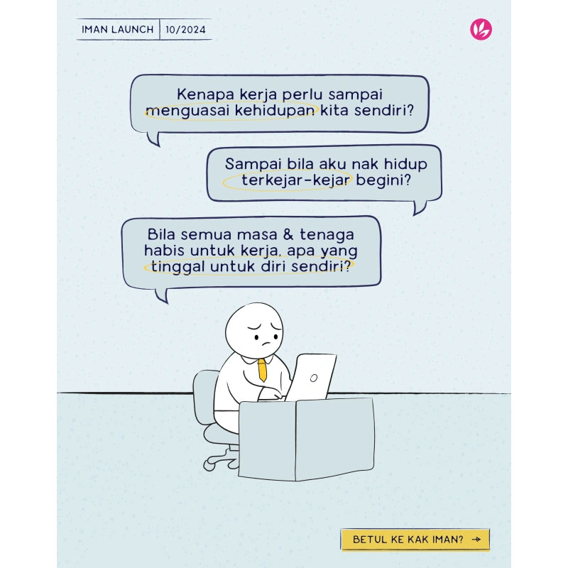 Hari ini, mencapai keseimbangan antara hidup dan kerjaya itu ibarat angan-angan. Usai menghadap kesesakan trafik dan seharian bekerja keras di sebelah siang; malam masih lagi terfikir-fikir tentang kerja.