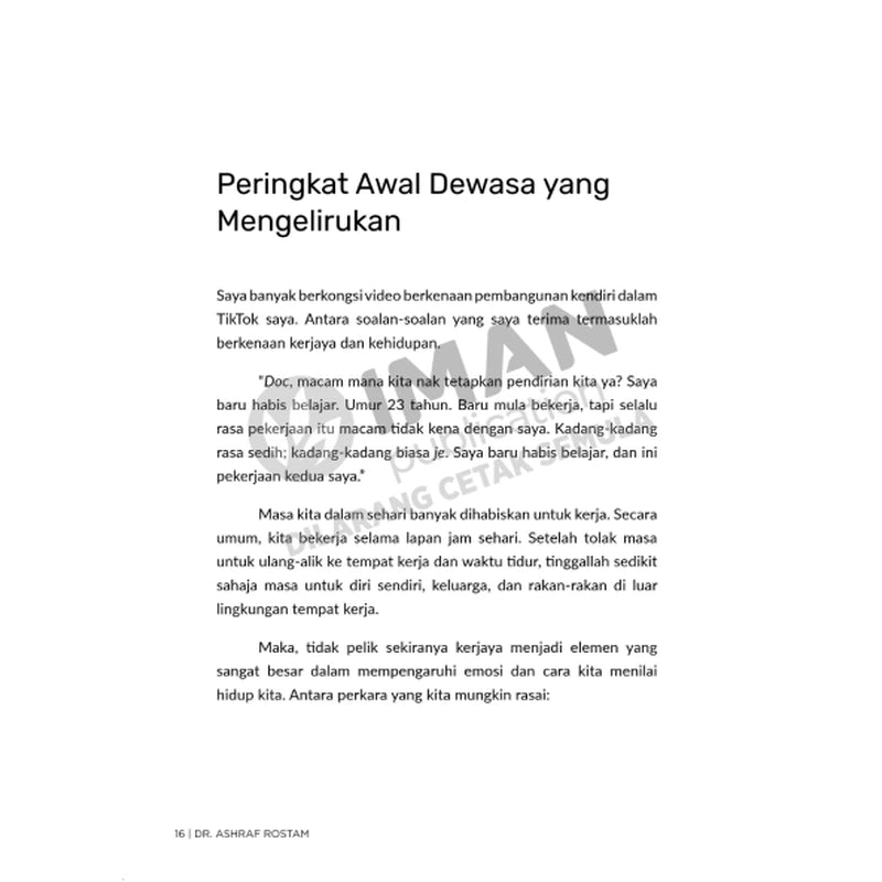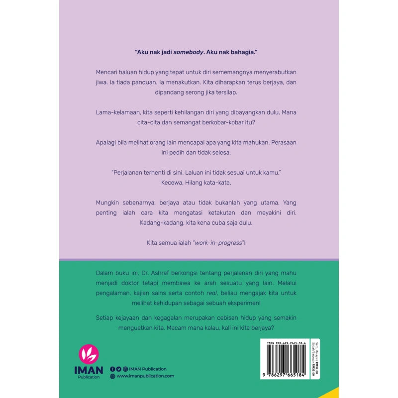 Dalam buku ini, Dr. Ashraf berkongsi tentang perjalanan diri yang mahu menjadi doktor tetapi membawa ke arah sesuatu yang lain. Melalui pengalaman, kajian sains serta contoh real, beliau mengajak kita untuk melihat kehidupan sebagai sebuah eksperimen!