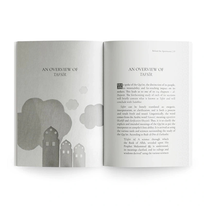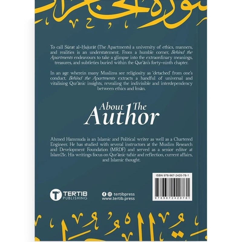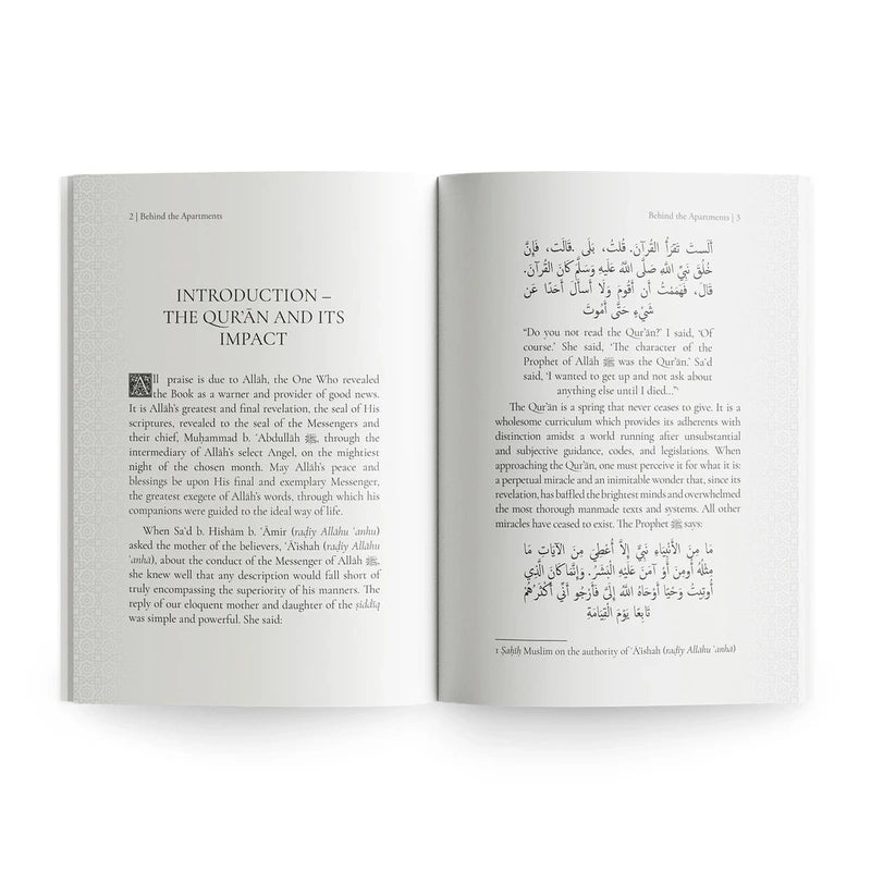 To call Surat al-Hujurat (The Apartments) a university of ethics, manners, and realities is an understatement. From a humbler corner, Behind the Apartments endeavours to take a glimpse into the extraordinary meanings, treasures, and subtleties buried within the Qurans forty-ninth chapter.
