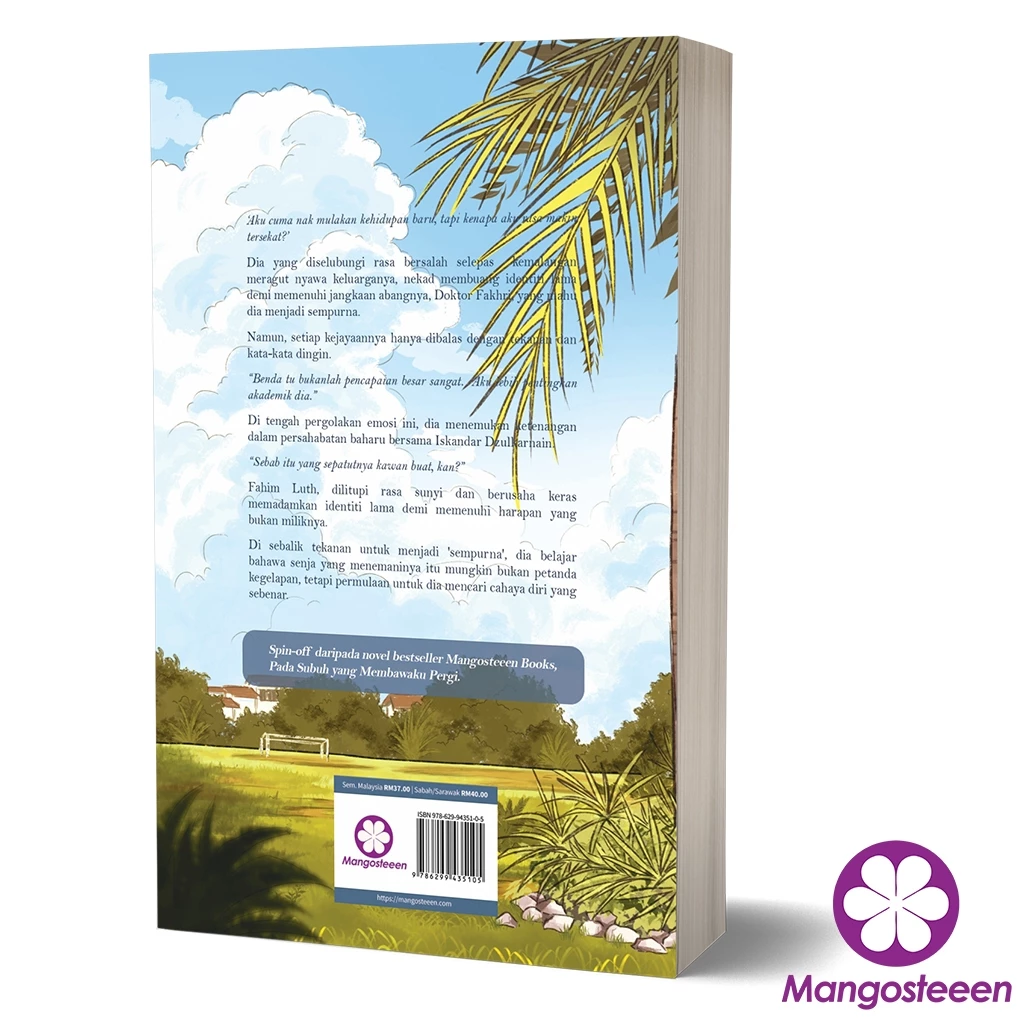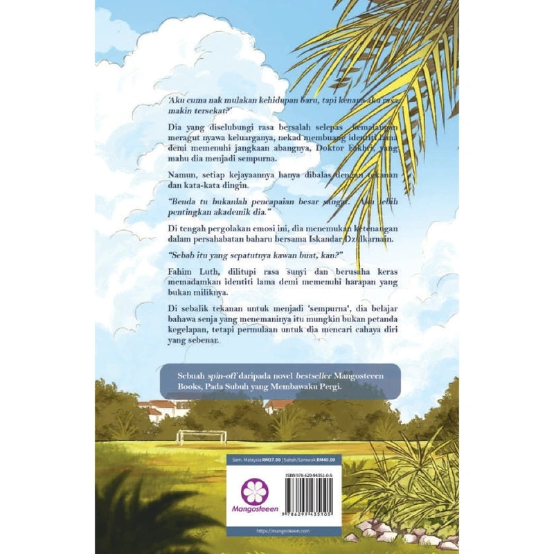 Aku cuma nak mulakan kehidupan baru, tapi kenapa aku rasa makin tersekat?’ Dia yang diselubungi rasa bersalah selepas kemalangan meragut nyawa keluarganya, nekad membuang identiti lama demi memenuhi jangkaan abangnya, Doktor Fakhri, yang mahu dia menjadi sempurna. Namun, setiap kejayaannya hanya dibalas dengan tekanan dan kata-kata dingin. “Benda tu bukanlah pencapaian besar sangat. Aku lebih pentingkan akademik dia.” Di tengah pergolakan emosi ini, dia menemukan ketenangan dalam persahabatan baharu bersama Iskandar Dzulkarnain. “Sebab itu yang sepatutnya kawan buat, kan?” Fahim Luth, dilitupi rasa sunyi dan berusaha keras memadamkan identiti lama demi memenuhi harapan yang bukan miliknya. Di sebalik tekanan untuk menjadi 'sempurna', dia belajar bahawa senja yang menemaninya itu mungkin bukan petanda kegelapan, tetapi permulaan untuk dia mencari cahaya diri yang sebenar