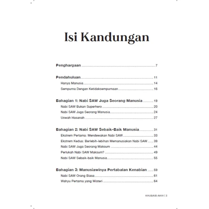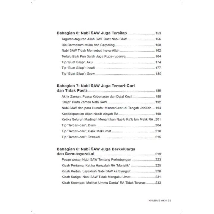 Melalui buku ini, Khubaib Akhi merungkai sisi manusiawi Nabi SAW yang selalunya tersembunyi. Ia bukanlah untuk meremehkan Baginda SAW, sebaliknya untuk menambah keakraban dan kecintaan kita terhadap Baginda SAW, lalu meneladaninya dalam segenap aspek kehidupan.